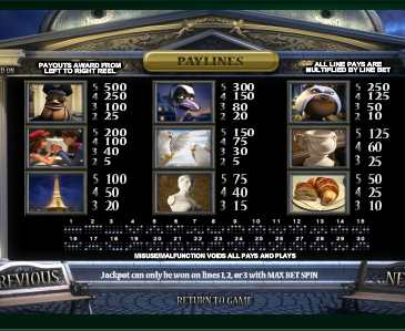Играя на деньги совершить задуманное не так уж просто, ведь ночью в музее работает охранник Жером ЛаБаст, в сопровождении верного пса Пьера. Парочка не даст Жаку ни шанса на ограбление выставки. Хотите посмотреть на схватку века? Тогда закройте на время привычные Ешки автоматы и добро пожаловать в незабываемый игровой автомат Ночь В Париже!
