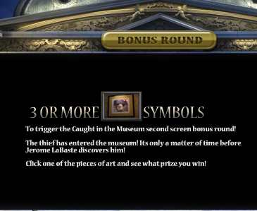 Захватывающая бонусная игра активируется после выпадения трех картин. Сможете поймать вора — получите отличный приз. Догадайтесь, что он украдет и позовите охранника. Награда будет начислена тут же — на ваш счет на сайте казино Вулкан Ставка.
