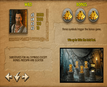- Bonus (золотая пирамида) – останавливается лишь на третьей, четвертой и пятой катушке, активирует бонусную игру.