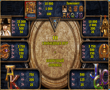 Большинство символов игрового аппарата изображены в виде драгоценных камней, на которые и охотится бандит. Автомат Золотой Ковчег за реальные деньги такой же загадочный и непредсказуемый, как и автомат Book of Ra.