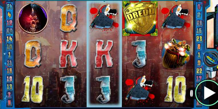 - Wild (Дредд) составляет оплачиваемые комбинации, заменяет базовые изображения в выгодных позициях. «Дикий» символ обретает особое значение в режиме SuperBet (ставку можно поднять до 100 евро);