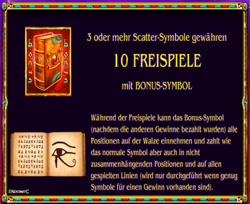 Аппарат Кольцо Фараона за деньги обладает пятью барабанами и тремя игровыми линиями. По концепции напоминает игровой автомат Книга Ра. Символика полностью соответствует тематике, но есть и уникальные изображения. Книга с глазом Ра вместила в себя функции дикого символа и разброса, в зависимости от выпавшей комбинации он играет роль то одного, то другого.