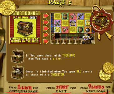 В качестве Вайлда выступает изображение черепа с костями, оно позволяет сделать комбинацию максимально выигрышной. А чтобы запустить бонусный раунд необходимо, чтобы на барабанах выпал сундучок.