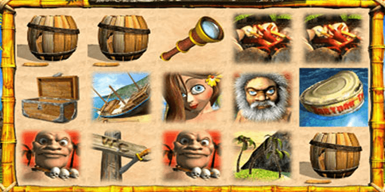Слот Robinzon богат персонажами: здесь вам встретятся темнокожие аборигены, красавица и некоторые неприятные личности. Среди символов попадается сундук, пальцы, хижина, подзорная труба, бочка и банка консервов. Консервы – это типичный Wild, превращающий простые иконки в идентичные соседним, если позиция благоволит.