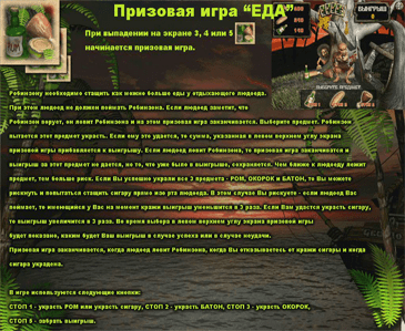 А вот когда на экране появится три корабля, Робинзону понадобится быстренько перенести вещи на плот, чтобы спастись с острова – но так, чтобы он не утонул. Остановки картинок с едой дают доступ к другой бонусной игре, где герою предстоит встреча с опасным людоедом. Удачно отобрав у него еду, игрок увеличит выигрыш вдвое.