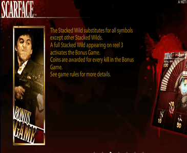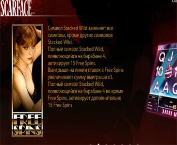 Слот Scarface за реальные деньги обладает 20 игровыми линиями и пятью барабанами, на которых геймер имеет возможность делать ставки. Для начала нужно выбрать количество линий и сделать ставки, после чего можно с головой окунуться в мир мафии. Есть еще и другие символы, изображенные в виде игровых карт. Здесь не обошлось и без дикого символа, ведь он делает выпавшую комбинацию выгодной для игрока.