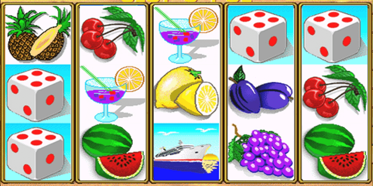 Базовые символы: яркие фрукты, пейзаж, яхта, сладкий коктейль. Коронованная латинская «Е» (самая ценная) также выполняет «дикие» функции: заменяет другие значки (кроме Spin и кости), чтобы сформировались удачные комбинации, к тому же и с удвоением. Scatter (доллар) может выпадать непоследовательно – и тем не менее будет оплачен.
