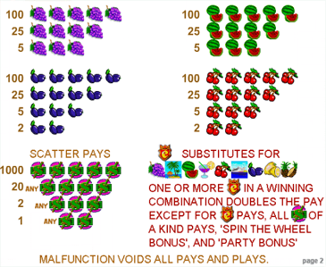 Виды оплачиваемых последовательностей обозначены в таблице коэффициентов: одинаковые иконки (от 2 штук) должны располагаться на активной полосе, включая первый слева барабан. Максимальный множитель достигает х10000, как и в игровом слоте Lucky Drink.